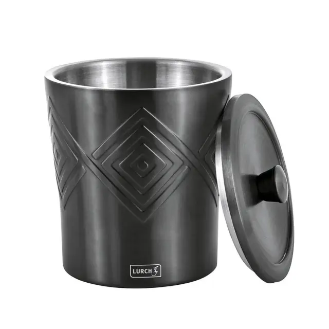 Vsak domači bar potrebuje kanček prefinjenosti – in prav to prinaša vedro za led Lurch Smokey Grey. Izdelano je iz kakovostnega nerjavečega jekla v dimno sivi barvi, ki združuje eleganten videz, funkcionalnost in izjemno učinkovitost hlajenja. Zahvaljujoč dvostenski izolaciji led ostane hladnejši dlje časa in ohrani svojo obliko, medtem ko pokrov preprečuje topljenje ter poskrbi, da so ledene kocke vedno čiste in higienske. Posoda ponuja dovolj prostora za do 1,5 litra ledu, kar je popolno za dolge poletne večere ali druženja s prijatelji. Primerno za pomivanje v pomivalnem stroju.