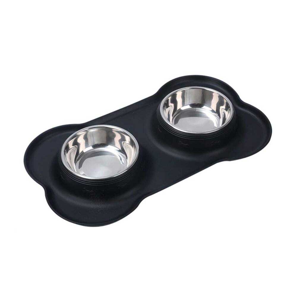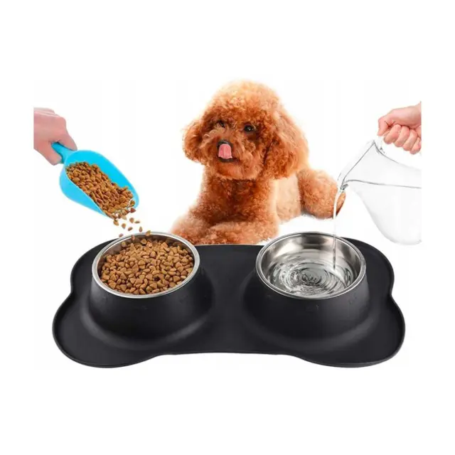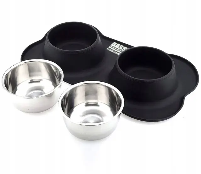 Posoda za pse in mačke s silikonskim podstavkom, set 2 kom.