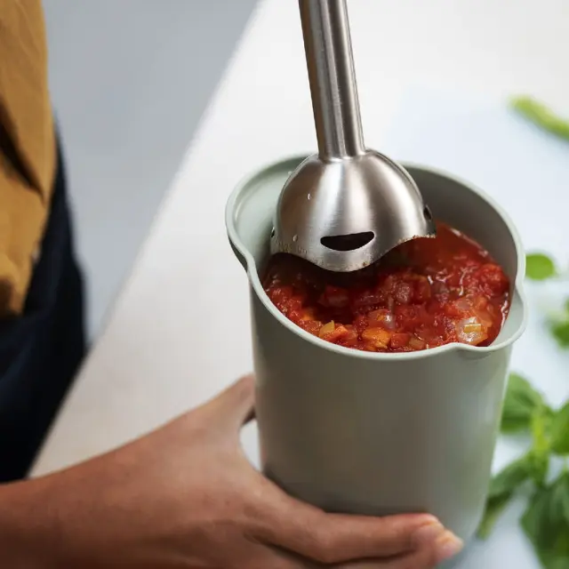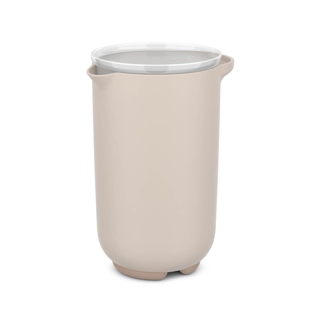 Posoda za stepanje s pokrovom Chef It (1L) je zasnovana mislijo na kuharske navdušence, saj ima sodoben in estetski dizajn. Zahvaljujoč podolgovati obliki je idealna za mešanje sestavin, ne glede na to, ali pripravljate smutije, kremne juhe ali pecivo. Nedrseči obroč zagotavlja stabilnost med uporabo. S pokrovom, ki preprečuje razlitje, lahko varno shranjujete mešanice ali marinade, hkrati pa ohranjate sestavine sveže. Ima natančen izliv, ki zmanjšuje razlitje. Popolnoma se prilega vratom hladilnika. Posoda je izdelana iz PP plastike, ki je trpežna, odporna na poškodbe, brez BPA in toplotno odporna na temperaturo do 110 °C. Primerna je za pomivanje v pomivalnem stroju, hladilnik, zamrzovanje in mikrovalovno pečico.