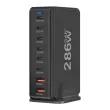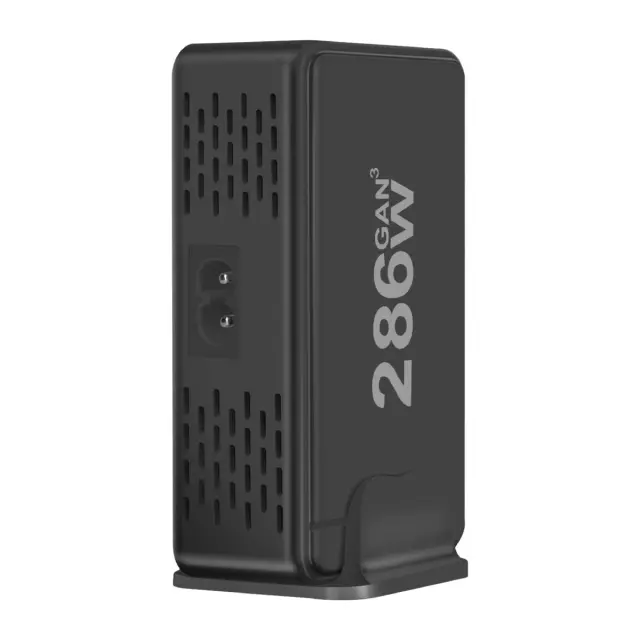 286 W skupne moči za hkratno hitro polnjenje. Tehnologija GaN3 za kompaktnost, učinkovitost in optimizirano odvajanje toplote. Ima 6 priključkov USB-C, združljivih z napajanjem Power Delivery (1x 100W, 5x 30W). Ima tudi 2 x 18W priključka USB-A Quick Charge 3.0 za dodatno opremo ali starejše naprave.