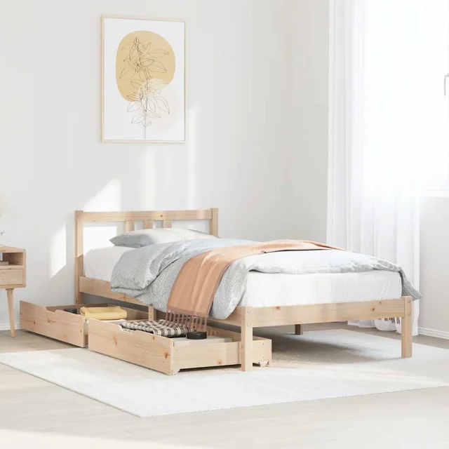 • Popolnoma izkoriščen prostor: Ta posteljni okvir ima spodaj dva predala, ki omogočata shranjevanje predmetov, kot so dodatna posteljnina, sezonska oblačila in igrače.