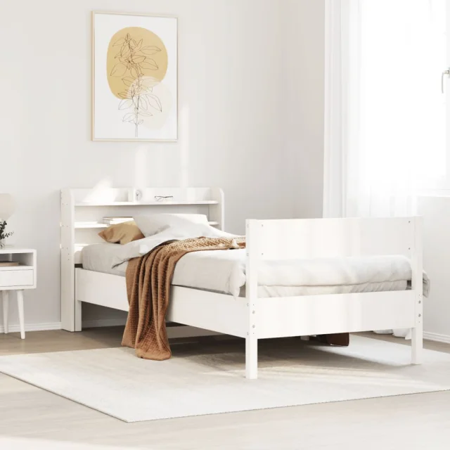 Postelja za odrasle - Posteljni Okvir brez vzmetnice bel 90x190 cm trdna borovina