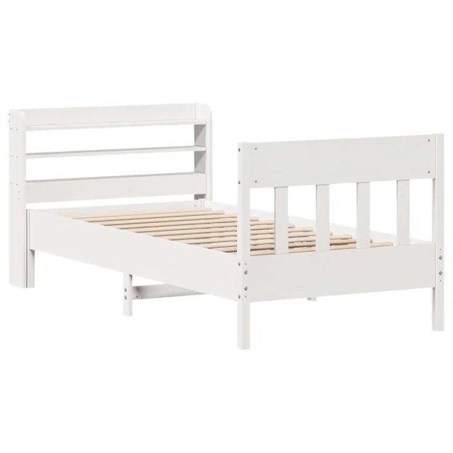 Postelja za odrasle - Posteljni Okvir brez vzmetnice bel 90x190 cm trdna borovina