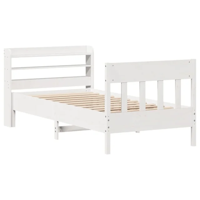 Postelja za odrasle - Posteljni Okvir brez vzmetnice bel 90x200 cm trdna borovina