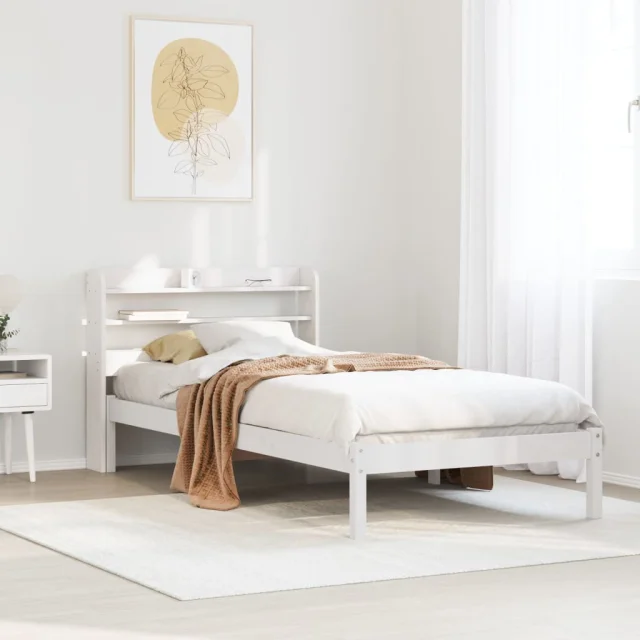 Postelja za odrasle - Posteljni Okvir brez vzmetnice bel 90x200 cm trdna borovina