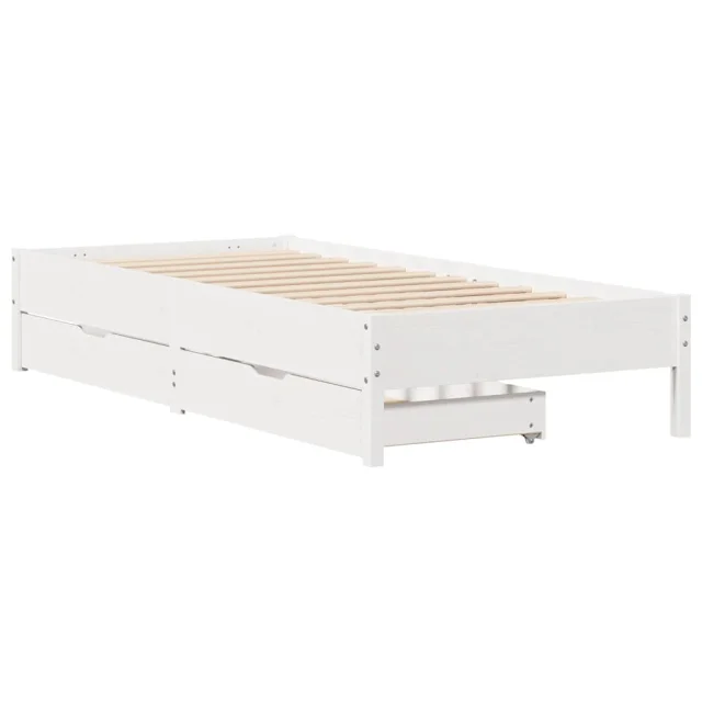 Postelja za odrasle - Posteljni Okvir brez vzmetnice bel 90x200 cm trdna borovina