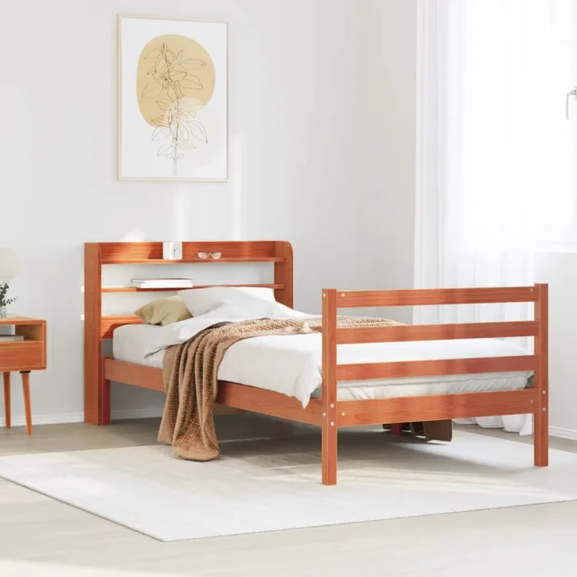Postelja za odrasle - Posteljni Okvir brez vzmetnice voščeno rjav 100x200 cm borovina