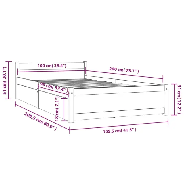 Postelja za odrasle - Posteljni Okvir s predali 100x200 cm