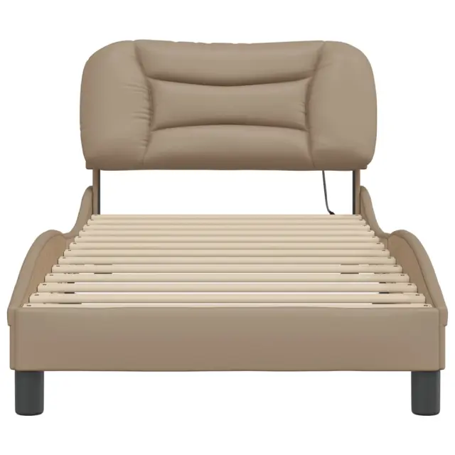 Postelja za odrasle - Posteljni Okvir z LED lučkami kapučino 90x190 cm umetno usnje