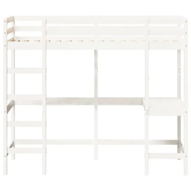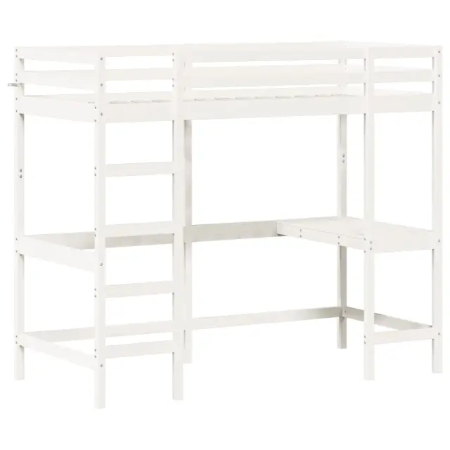 Postelja za odrasle - Posteljni Okvir z mizo bel 90x200 cm trdna borovina