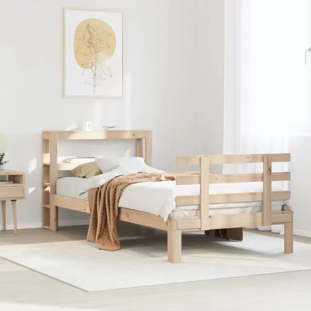 Postelja za odrasle - Posteljni Okvir z vzglavjem 90x200 cm trdna borovina