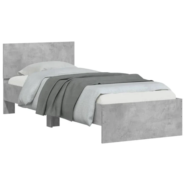 Postelja za odrasle - Posteljni Okvir z vzglavjem betonsko siv 90x200 cm inž. les