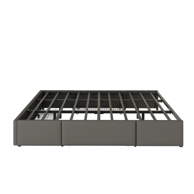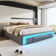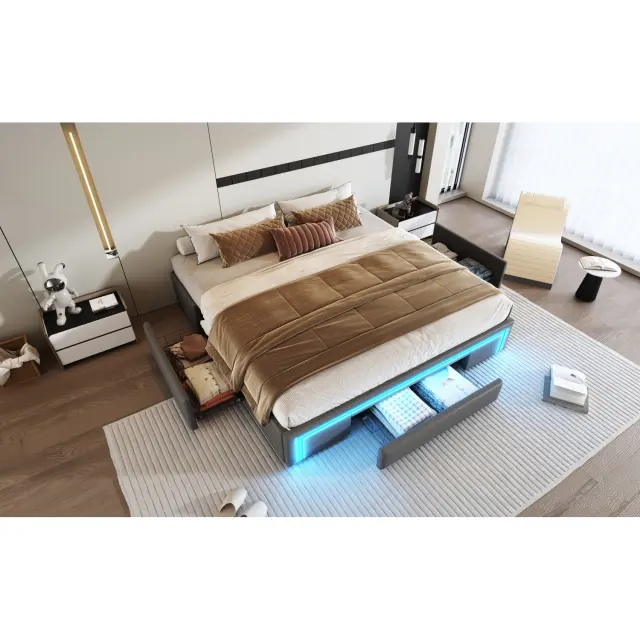 Posteljni okvir 180x200 siv s predali, umetno usnje, brez vzglavja, LED