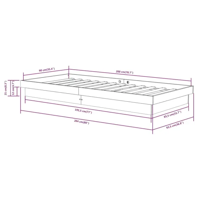 Posteljni okvir bel iz trdnega lesa 90x200 cm