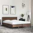 Zagotovite si boljši spanec s tem posteljnim okvirjem! Je prijeten dodatek za vsako spalnico. Vzdržljiv material: Inženirski les se ponaša z izjemno kakovostjo, gladko površino ter močjo, stabilnostjo in odpornostjo na vlago. Kovinske noge in letvice iz vezanega lesa: Okvir postelje je opremljen s kovinskimi nogami in letvicami iz vezanega lesa, ki ležišču nudijo potrebno oporo in zračnost.Odlična podpora: Vzglavje zagotavlja odlično oporo hrbtu, ko sedite v postelji in berete ali gledate televizijo. Dobro je vedeti: Vzmetnica ni priložena tej postelji. Ponujamo različno izbiro ležišč. V naši trgovini si lahko ogledate ustrezne vzmetnice.Barva: Rjav hrastMaterial posteljnega okvirja: Inženirski les, kovinaMaterial letvic: Vezan lesCelotne dimenzije: 193 x 138 x 80 cm (D x Š x V)Velikost primerne vzmetnice: 135 x 190 cm (Š x D) (vzmetnica ni priložena)Potrebno sestavljanje: Da
