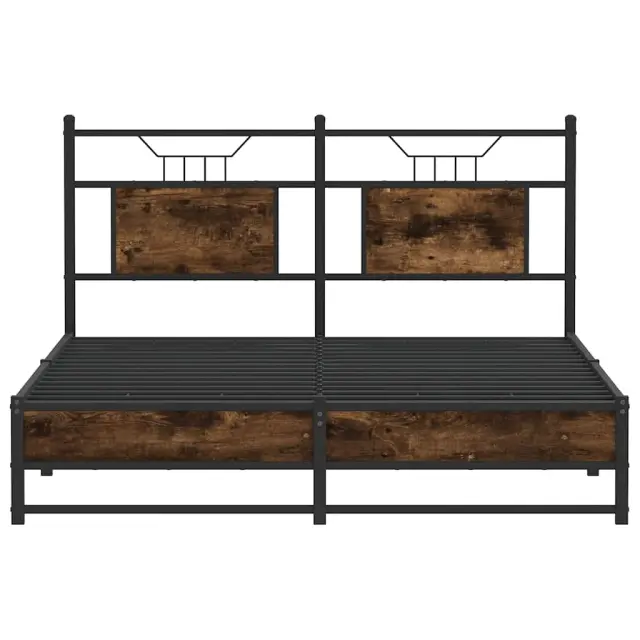 Zagotovite si boljši spanec s tem posteljnim okvirjem! Je prijeten dodatek za vsako spalnico. Stabilen in dolgotrajen okvir: Jeklo je močno, stabilno in trpežno, zato je idealna izbira za številne aplikacije, od proizvodnje pohištva do gradbeništva.Vsestransko vzglavje: Ta postelja je opremljena z vzglavjem, ki zagotavlja odlično oporo hrbtu, ko sedite v postelji in berete ali gledate televizijo, hkrati pa služi tudi kot dekorativni element.Dodaten prostor za shranjevanje: Za udobje ima posteljni podstavek pod seboj dodaten prostor, v katerem lahko shranite škatle za shranjevanje, ki niso vidne.Podnožje z letvami za optimalno podporo: Kovinski posteljni okvir je opremljen z letvenim dnom, ki zagotavlja oporo in zračnost ležišča. Dobro je vedeti:Vzmetnica ni priložena tej postelji. Ponujamo različno izbiro ležišč. V naši trgovini si lahko ogledate ustrezne vzmetnice.Barva: Dimljeni hrastMaterial: Inženirski les in jekloCelotne dimenzije: 207 x 157 x 91,5 cm (D x Š x V)Višina prostora pod posteljo: 27 cmVelikost primerne vzmetnice: 150 x 200 cm (Š x D) (vzmetnica ni priložena)Z vzglavjemPotrebno sestavljanje: Da