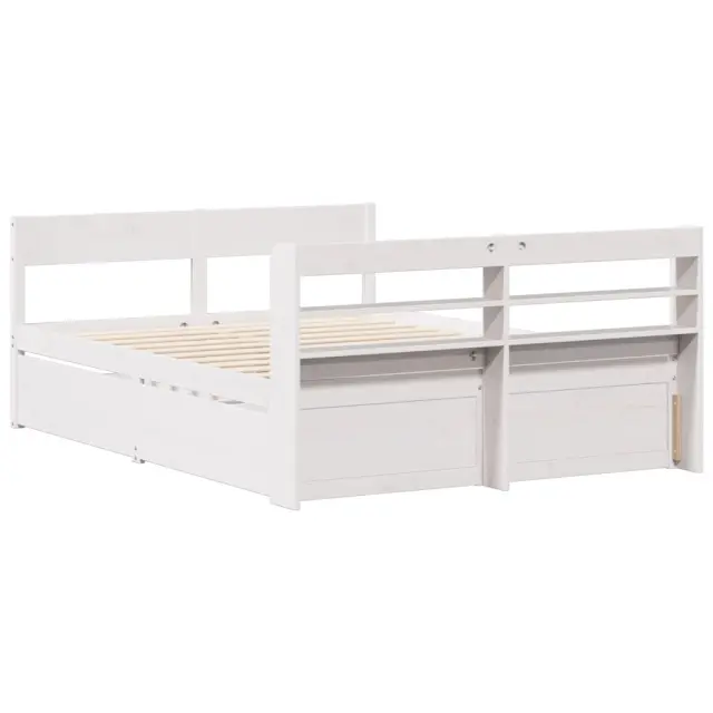 Posteljni okvir - Dvoposteljna postelja - Zakonska postelja brez vzmetnice bel 120x200 cm trdna borovina-J11185