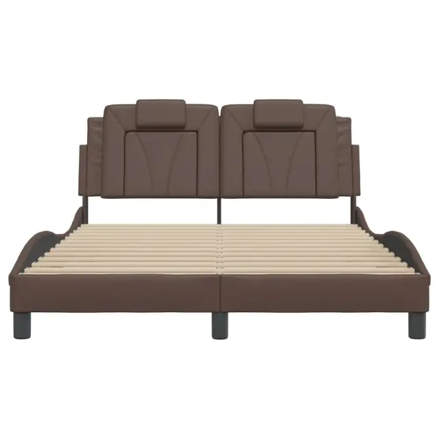 Posteljni okvir - Dvoposteljna postelja - Zakonska postelja z vzglavjem rjava 120x200 cm umetno usnje-J16259