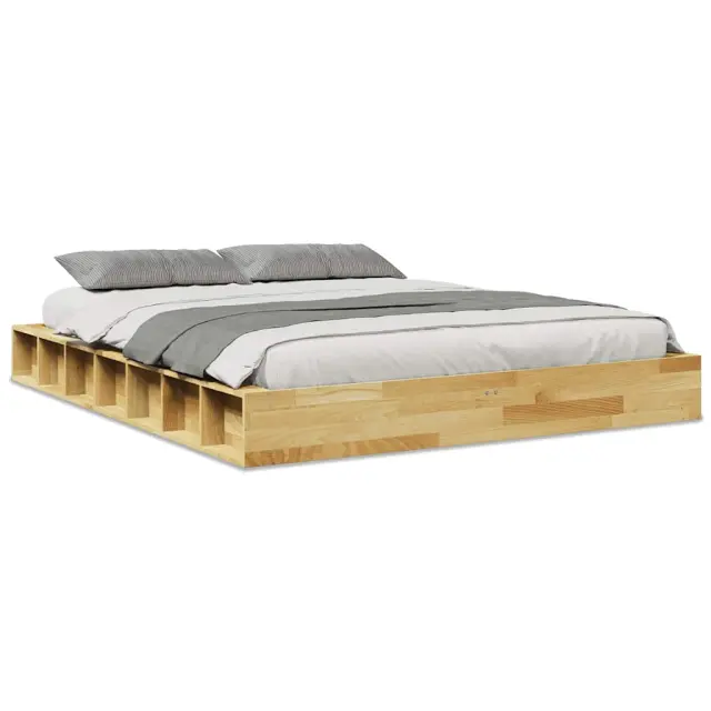 Zagotovite si boljši spanec s tem posteljnim okvirjem! Je prijeten dodatek za vsako spalnico. Robustno in stabilno: Masivni hrastov les je znan po svoji trdnosti, trajnosti in lepem vzorcu zrn, zato je odličen za pohištvo z dolgo življenjsko dobo.Podnožje z letvami za optimalno podporo: Za podporo in zračnost ležišča je posteljni okvir opremljen z letvenim dnom.Funkcija shranjevanja: Ta posteljni okvir ima odprte predelke za dobro organizacijo revij, knjig, igrač in drugih manjših predmetov. Dobro je vedeti:Vzmetnica ni priložena tej postelji. Ponujamo različno izbiro ležišč. V naši trgovini si lahko ogledate ustrezne vzmetnice.Material okvirja postelje: Masivni hrastov lesMaterial letvic: Vezan lesCelotne mere: 203 x 178 x 21 cm (D x Š x V)Velikost primerne vzmetnice: 160 x 200 cm (Š x D) (vzmetnica ni priložena)Potrebno sestavljanje: Da