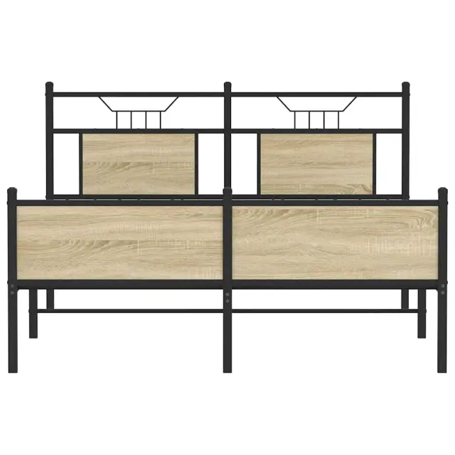 Zagotovite si boljši spanec s tem posteljnim okvirjem! Je prijeten dodatek za vsako spalnico. Stabilen in dolgotrajen okvir: Jeklo je močno, stabilno in trpežno, zato je idealna izbira za številne aplikacije, od proizvodnje pohištva do gradbeništva.Funkcionalno vzglavje in podnožje: Vzglavje in podnožje posteljnega dna ohranjata ležišče na mestu. Poleg tega vzglavje zagotavlja odlično oporo hrbtu, ko sedite v postelji in berete ali gledate televizijo.Dodaten prostor za shranjevanje: Za udobje ima posteljni podstavek pod seboj dodaten prostor, v katerem lahko shranite škatle za shranjevanje, ki niso vidne.Podnožje z letvami za optimalno podporo: Kovinski posteljni okvir je opremljen z letvenim dnom, ki zagotavlja oporo in zračnost ležišča. Dobro je vedeti:Vzmetnica ni priložena tej postelji. Ponujamo različno izbiro ležišč. V naši trgovini si lahko ogledate ustrezne vzmetnice.Barva: Sonoma hrastMaterial: Inženirski les in jekloCelotne dimenzije: 207 x 147 x 91,5 cm (D x Š x V)Višina prostora pod posteljo: 27 cmVelikost primerne vzmetnice: 140 x 200 cm (Š x D) (vzmetnica ni priložena)Z vzglavjem in podnožjemPotrebno sestavljanje: Da