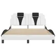 Zagotovite si boljši spanec s tem posteljnim okvirjem z vzglavjem! Je prijeten dodatek za vsako spalnico. Trpežno umetno usnje: Vrhunsko umetno usnje je zelo vzdržljiv material. Je odporno na madeže, zato ga lahko preprosto čistite z vlažno krpo. Gladka površina mu prav tako daje razkošen videz in lepoto pravega usnja.Letvice iz vezanega lesa: Letvice iz vezanega lesa omogočajo dobro porazdelitev teže in zagotavljajo, da vzmetnica ostane na mestu ob vsakem zasuku in obračanju med spanjem.Odlična podpora: Vzglavna stranica je napolnjena s peno za izjemno mehkobo in optimalno udobje ter zagotavlja odlično podporo hrbtu, ko sedite v postelji in berete ali gledate televizijo.Valovita stranica: Valoviti videz posteljnega okvirja je eleganten in prefinjen. Dekorju v vašem domu dodaja sodoben in eleganten pridih ter tako postane osrednja točka spalnice. Dobro je vedeti:Vzmetnica ni priložena tej postelji. Ponujamo različno izbiro ležišč. V naši trgovini si lahko ogledate ustrezne vzmetnice.Posteljni okvir z vzglavjem:Barva: Bela in črnaMaterial: Umetno usnje (75 % polivinilklorid, 5 % bombaž, 20 % poliester), kovina, trdna borovina, vezan lesCelotne dimenzije: 218 x 125 x 74,5 cm (D x Š x V)Velikost primerne vzmetnice: 120 x 200 cm (Š x D) (vzmetnica ni priložena)Oblazinjeno vzglavje:Barva: BelaMaterial: Umetno usnje (75 % polivinilklorid, 5 % bombaž, 20 % poliester)Material polnila: PenaDimenzije: 120 x 15 x 49 cm (D x Š x V)Primerna širina vzmetnice: 120 cmPotrebno sestavljanje: DaPaket vsebuje:1 x Posteljni okvir z vzglavjem1 x Oblazinjeno vzglavje