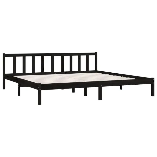 Posteljni okvir - Dvoposteljna postelja - Zakonska postelja črn iz trdne borovine 200x200 cm-J4887