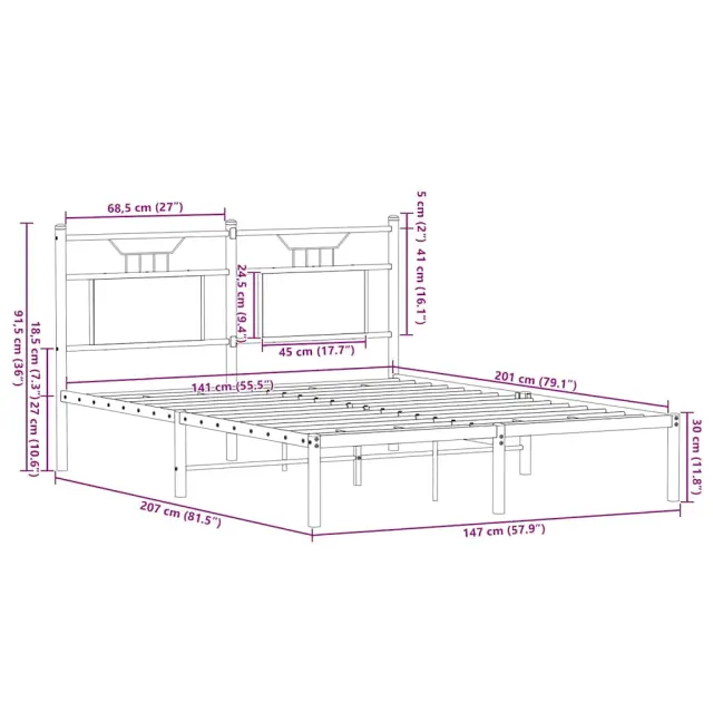 Zagotovite si boljši spanec s tem posteljnim okvirjem! Je prijeten dodatek za vsako spalnico. Stabilen in dolgotrajen okvir: Jeklo je močno, stabilno in trpežno, zato je idealna izbira za številne aplikacije, od proizvodnje pohištva do gradbeništva.Vsestransko vzglavje: Ta postelja je opremljena z vzglavjem, ki zagotavlja odlično oporo hrbtu, ko sedite v postelji in berete ali gledate televizijo, hkrati pa služi tudi kot dekorativni element.Dodaten prostor za shranjevanje: Za udobje ima posteljni podstavek pod seboj dodaten prostor, v katerem lahko shranite škatle za shranjevanje, ki niso vidne.Podnožje z letvami za optimalno podporo: Kovinski posteljni okvir je opremljen z letvenim dnom, ki zagotavlja oporo in zračnost ležišča. Dobro je vedeti:Vzmetnica ni priložena tej postelji. Ponujamo različno izbiro ležišč. V naši trgovini si lahko ogledate ustrezne vzmetnice.Barva: Dimljeni hrastMaterial: Inženirski les in jekloCelotne dimenzije: 207 x 147 x 91,5 cm (D x Š x V)Višina prostora pod posteljo: 27 cmVelikost primerne vzmetnice: 140 x 200 cm (Š x D) (vzmetnica ni priložena)Z vzglavjemPotrebno sestavljanje: Da