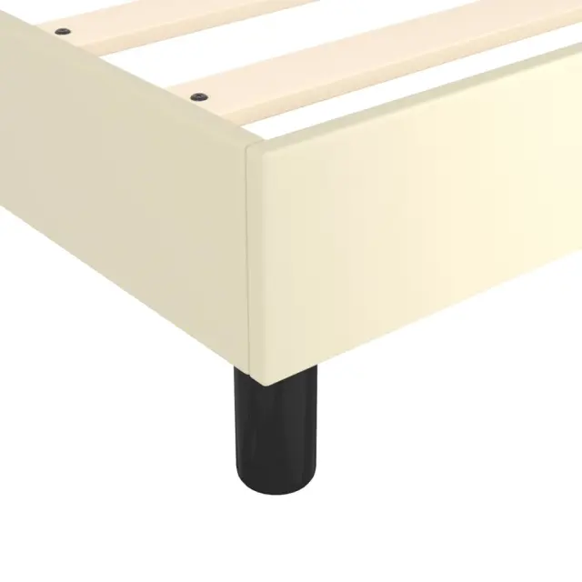 Zagotovite si boljši spanec s tem posteljnim okvirjem! Je prijeten dodatek za vsako spalnico. Trpežno umetno usnje: Vrhunsko umetno usnje je zelo vzdržljiv material. Je odporno na madeže, zato ga lahko preprosto čistite z vlažno krpo. Gladka površina mu prav tako daje razkošen videz in lepoto pravega usnja.Podporne noge: Postelja je podprta s čvrstimi nogami, ki zagotavljajo njeno stabilnost, varnost in trdnost.Letvice iz vezanega lesa: Letvice iz vezanega lesa omogočajo dobro porazdelitev teže in zagotavljajo, da vzmetnica ostane na mestu ob vsakem zasuku in obračanju med spanjem. Dobro je vedeti:Vzmetnica ni priložena tej postelji. Ponujamo različno izbiro ležišč. V naši trgovini si lahko ogledate ustrezne vzmetnice.Barva: KremMaterial: Umetno usnje (75 % polivinilklorid, 5 % bombaž, 20 % poliester), vezan les, konstruiran lesCelotne dimenzije: 203 x 180 x 25 cm (D x Š x V)Velikost primerne vzmetnice: 180 x 200 cm (Š x D) (vzmetnica ni priložena)
