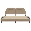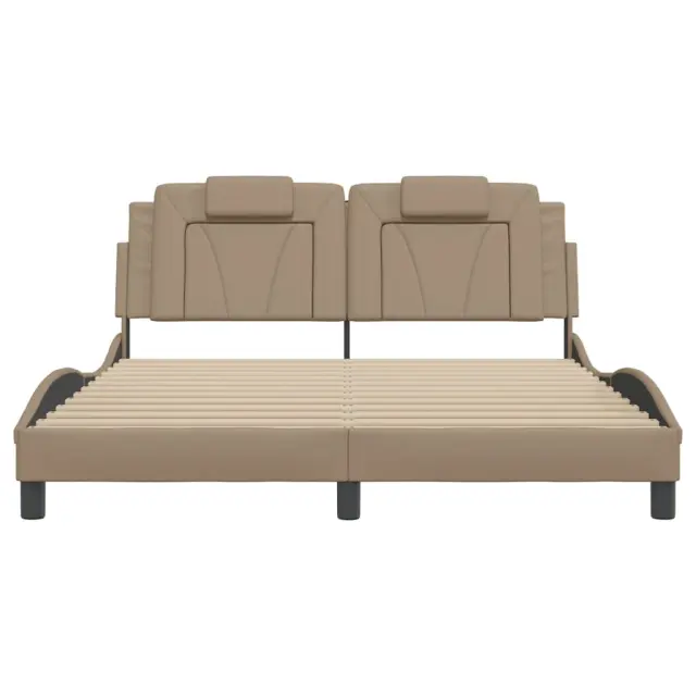 Zagotovite si boljši spanec s tem posteljnim okvirjem z vzglavjem! Je prijeten dodatek za vsako spalnico. Trpežno umetno usnje: Vrhunsko umetno usnje je zelo vzdržljiv material. Je odporno na madeže, zato ga lahko preprosto čistite z vlažno krpo. Gladka površina mu prav tako daje razkošen videz in lepoto pravega usnja.Letvice iz vezanega lesa: Letvice iz vezanega lesa omogočajo dobro porazdelitev teže in zagotavljajo, da vzmetnica ostane na mestu ob vsakem zasuku in obračanju med spanjem.Odlična podpora: Vzglavna stranica je napolnjena s peno za izjemno mehkobo in optimalno udobje ter zagotavlja odlično podporo hrbtu, ko sedite v postelji in berete ali gledate televizijo.Valovita stranica: Valoviti videz posteljnega okvirja je eleganten in prefinjen. Dekorju v vašem domu dodaja sodoben in eleganten pridih ter tako postane osrednja točka spalnice. Dobro je vedeti:Vzmetnica ni priložena tej postelji. Ponujamo različno izbiro ležišč. V naši trgovini si lahko ogledate ustrezne vzmetnice.Posteljni okvir z vzglavjem:Barva: KapučinoMaterial: Umetno usnje (75 % polivinilklorid, 5 % bombaž, 20 % poliester), kovina, trdna borovina, vezan lesCelotne dimenzije: 218 x 165 x 74,5 cm (D x Š x V)Velikost primerne vzmetnice: 160 x 200 cm (Š x D) (vzmetnica ni priložena)Oblazinjeno vzglavje:Barva: KapučinoMaterial: Umetno usnje (75 % polivinilklorid, 5 % bombaž, 20 % poliester)Material polnila: PenaDimenzije: 160 x 15 x 49 cm (D x Š x V)Primerna širina vzmetnice: 160 cmPotrebno sestavljanje: DaPaket vsebuje:1 x Posteljni okvir z vzglavjem1 x Oblazinjeno vzglavje