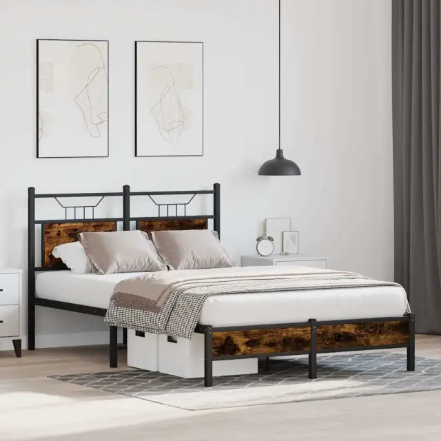 Zagotovite si boljši spanec s tem posteljnim okvirjem! Je prijeten dodatek za vsako spalnico. Stabilen in dolgotrajen okvir: Jeklo je močno, stabilno in trpežno, zato je idealna izbira za številne aplikacije, od proizvodnje pohištva do gradbeništva.Vsestransko vzglavje: Ta postelja je opremljena z vzglavjem, ki zagotavlja odlično oporo hrbtu, ko sedite v postelji in berete ali gledate televizijo, hkrati pa služi tudi kot dekorativni element.Dodaten prostor za shranjevanje: Za udobje ima posteljni podstavek pod seboj dodaten prostor, v katerem lahko shranite škatle za shranjevanje, ki niso vidne.Podnožje z letvami za optimalno podporo: Kovinski posteljni okvir je opremljen z letvenim dnom, ki zagotavlja oporo in zračnost ležišča. Dobro je vedeti:Vzmetnica ni priložena tej postelji. Ponujamo različno izbiro ležišč. V naši trgovini si lahko ogledate ustrezne vzmetnice.Barva: Dimljeni hrastMaterial: Inženirski les in jekloCelotne dimenzije: 196 x 126 x 91,5 cm (D x Š x V)Višina prostora pod posteljo: 27 cmVelikost primerne vzmetnice: 120 x 190 cm (Š x D) (vzmetnica ni priložena)Z vzglavjemPotrebno sestavljanje: Da