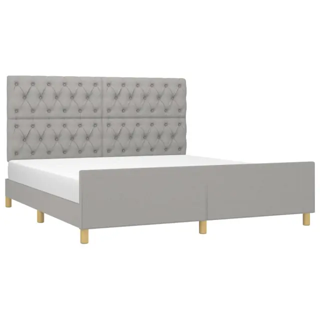 Zagotovite si boljši spanec s tem posteljnim okvirjem z vzglavjem! Je prijeten dodatek za vsako spalnico. Trpežno blago: Blago zagotavlja preprost in čist videz, poleg tega pa je zračno in trpežno.Nastavljiva višina: Vzglavje postelje je nastavljivo po višini po vaših željah.Podporne noge: Postelja je podprta s čvrstimi nogami, ki zagotavljajo njeno stabilnost, varnost in trdnost.Letvice iz vezanega lesa: Letvice iz vezanega lesa omogočajo dobro porazdelitev teže in zagotavljajo, da vzmetnica ostane na mestu ob vsakem zasuku in obračanju med spanjem.Udobna opora: To vzglavje za posteljo vam zagotavlja odlično oporo za hrbet, ko sedite na postelji in berete ali gledate filme. Opomba:Paket vsebuje samo posteljni okvir. Vzmetnica ni priložena. V naši trgovini si lahko ogledate ustrezne vzmetnice.Vsakemu izdelku je priložen priročnik za enostavno sestavljanje.Barva: Svetlo sivaMaterial: Blago (100 % poliester), trden macesnov les, vezan les, inženirski lesMaterial polnila: PenaCelotne dimenzije: 203 x 166 x 118/128 cm (D x Š x V)Velikost primerne vzmetnice: 160 x 200 cm (Š x D) (vzmetnica ni priložena)Paket vsebuje:1 x Posteljni okvir z vznožjem1 x Vzglavje