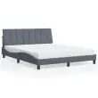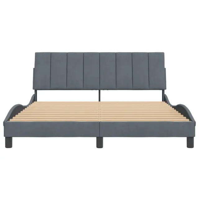 Zagotovite si boljši spanec s tem posteljnim okvirjem z vzglavjem! Je prijeten dodatek za vsako spalnico. Mehak žamet: Žamet je mehka in udobna tkanina, ki je prijetna do kože.Letvice iz vezanega lesa: Letvice iz vezanega lesa omogočajo dobro porazdelitev teže in zagotavljajo, da vzmetnica ostane na mestu ob vsakem zasuku in obračanju med spanjem.Odlična podpora: Vzglavna stranica je napolnjena s peno za izjemno mehkobo in optimalno udobje ter zagotavlja odlično podporo hrbtu, ko sedite v postelji in berete ali gledate televizijo.Priročna zasnova: Vzglavna stranica ima zadrgo za preprosto namestitev, pripenjala na zadnji strani pa se lahko uporabijo za pritrditev LED lučk.Valovita stranica: Valoviti videz posteljnega okvirja je eleganten in prefinjen. Dekorju v vašem domu dodaja sodoben in eleganten pridih ter tako postane osrednja točka spalnice. Dobro je vedeti:Vzmetnica ni priložena tej postelji. Ponujamo različno izbiro ležišč. V naši trgovini si lahko ogledate ustrezne vzmetnice.Posteljni okvir z vzglavjem:Barva: Temno sivaMaterial: Žamet (100 % poliester), kovina, trdna borovina, vezan les, inženirski lesCelotne dimenzije: 218 x 165 x 74,5 cm (D x Š x V)Velikost primerne vzmetnice: 160 x 200 cm (Š x D) (vzmetnica ni priložena)Oblazinjeno vzglavje:Barva: Temno sivaMaterial: Žamet (100 % poliester)Material polnila: PenaDimenzije: 160 x 3 x 45 cm (D x Š x V)Primerna širina vzmetnice: 160 cmPotrebno sestavljanje: DaPaket vsebuje:1 x Posteljni okvir z vzglavjem1 x Oblazinjeno vzglavje