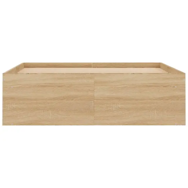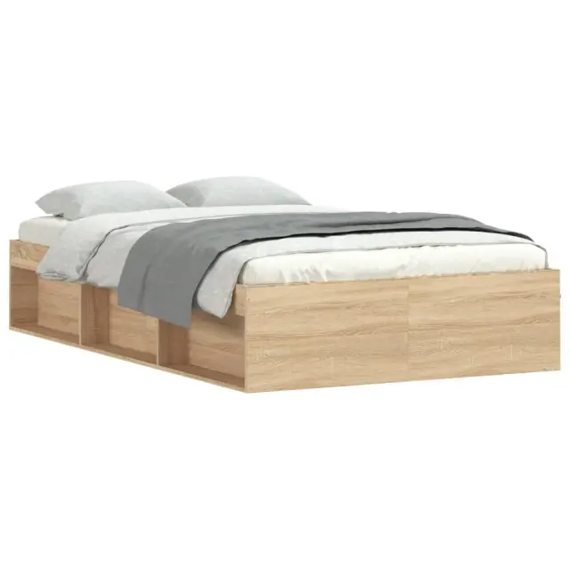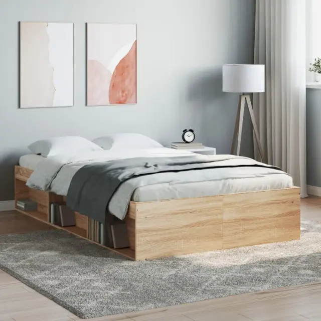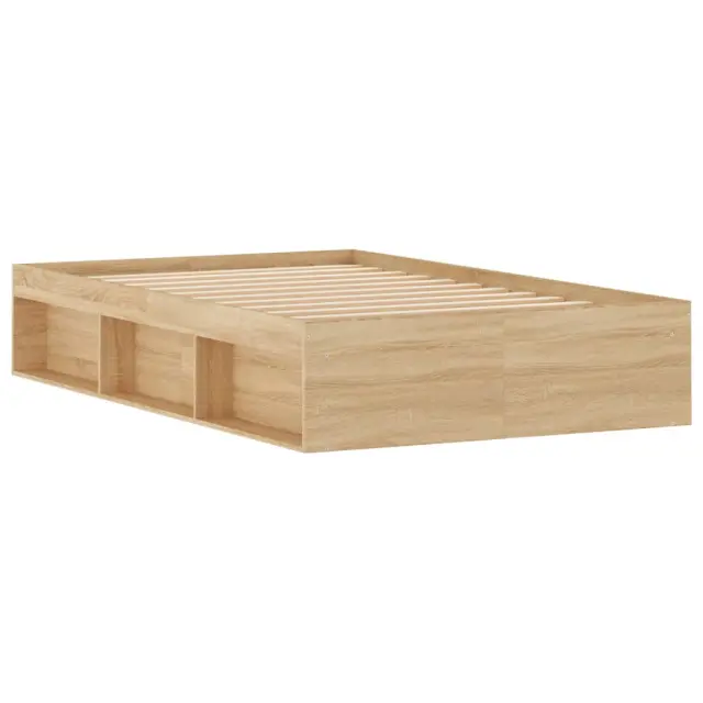 Ustvarite moderno spalnico s tem posteljnim okvirjem! To bo praktičen in okrasen dodatek za vaše notranje prostore. Vzdržljiv material: Inženirski les se ponaša z izjemno kakovostjo, gladko površino ter močjo, stabilnostjo in odpornostjo na vlago.Letvice iz vezanega lesa: Letvice iz vezanega lesa omogočajo dobro porazdelitev teže in zagotavljajo, da vzmetnica ostane na mestu ob vsakem zasuku in obračanju med spanjem.Dodaten prostor za shranjevanje: Postelja za goste ima skupno 6 predelkov na obeh straneh postelje za shranjevanje stvari, kot so knjige, lončnice in drugi okraski. Dobro je vedeti:Vzmetnica ni priložena tej postelji. Ponujamo različno izbiro ležišč. V naši trgovini si lahko ogledate ustrezne vzmetnice.Barva: Sonoma hrastMaterial posteljnega okvirja: Inženirski les, trdna borovinaMaterial letvic: Vezan lesCelotne dimenzije: 203 x 123 x 35 cm (D x Š x V)Primerna velikost vzmetnice (vzmetnica ni vključena): 120 x 200 cm (Š x D)Potrebno sestavljanje: Da