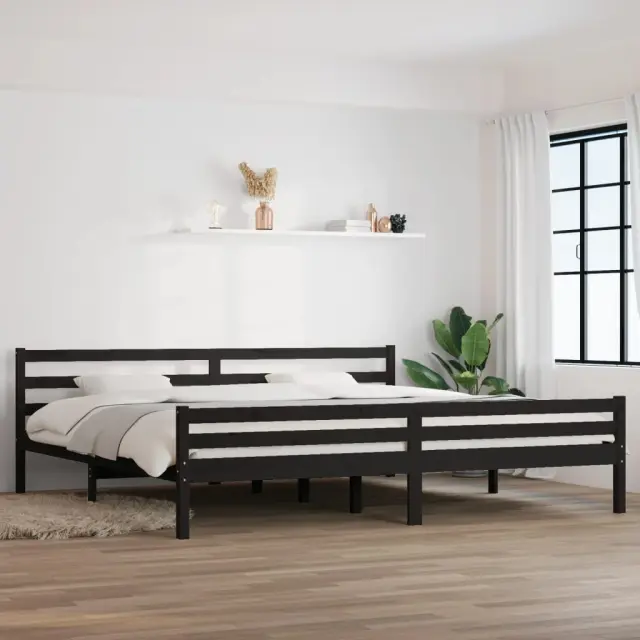 Posteljni okvir - Dvoposteljna postelja - Zakonska postelja črn iz trdnega lesa 200x200 cm-J4932