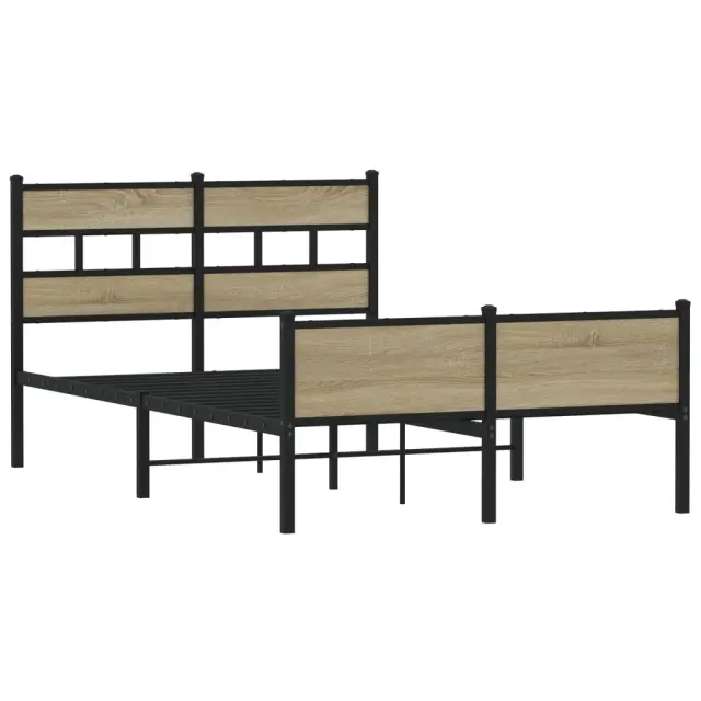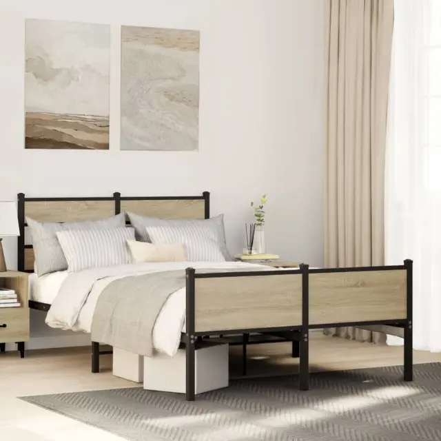 Če iščete trpežen posteljni okvir za svojo spalnico, je ta klasični posteljni okvir z elegantnim in brezčasnim dizajnom popolna izbira!Robustna kovinska konstrukcija: Okvir postelje je izdelan iz jekla. Jeklo je izjemno trd in močan material, ki zagotavlja izjemno trdnost in stabilnost.Kovinske letvice in noge: Kovinski posteljni okvir je opremljen s kovinskimi letvami in sredinskimi nogami, ki ležišču nudijo nujno potrebno oporo in zračnost.Dodaten prostor za shranjevanje: Za vaše udobje ima postelja za goste pod seboj tudi dodaten prostor, da vaše škatle za shranjevanje ne bodo vidne.Odlična opora: Vzglavje zagotavlja odlično oporo hrbtu, ko sedite v postelji in berete ali gledate televizijo.Dobro je vedeti:Vzmetnica ni priložena tej postelji. Ponujamo različno izbiro ležišč. V naši trgovini si lahko ogledate ustrezne vzmetnice.Za čim lažjo montažo je vsakemu izdelku priložen priročnik.Barva: Sonoma hrastMaterial: Jeklo, inženirski lesCelotne dimenzije: 196 x 125 x 91,5 cm (D x Š x V)Višina prostora pod posteljo: 28 cmVelikost primerne vzmetnice: 120 x 190 cm (Š x D) (vzmetnica ni priložena)Potrebno sestavljanje: Da