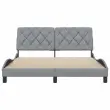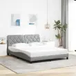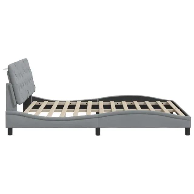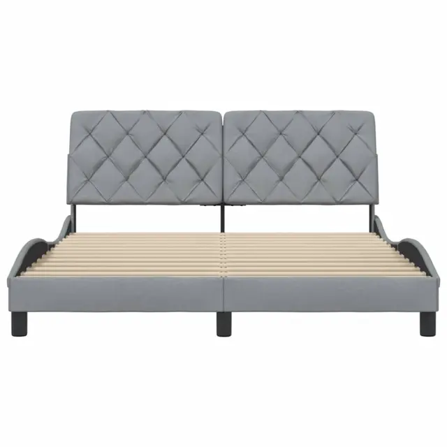 Zagotovite si boljši spanec s tem posteljnim okvirjem! Je prijeten dodatek za vsako spalnico. Mehak in trpežen material: Tkanina iz poliestra ponuja kombinacijo mehkobe, zračnosti in trpežnosti ter vam zagotavlja popolno udobje in prijetnost.Letvice za optimalno podporo: Ta posteljni okvir je opremljen z letvicami, ki zagotavljajo osnovno podporo in zračnost vašega ležišča.Vsestransko vzglavje: Ta posteljni okvir je opremljen z vzglavjem, ki zagotavlja odlično oporo hrbtu, ko sedite v postelji in berete ali gledate televizijo, hkrati pa služi tudi kot dekorativni element.Priročna zasnova: Vzglavna stranica ima zadrgo za preprosto namestitev, pripenjala na zadnji strani pa se lahko uporabijo za pritrditev LED lučk.Valovita stranica: Valoviti videz posteljnega okvirja je eleganten in prefinjen. Dekorju v vašem domu dodaja sodoben in eleganten pridih ter tako postane osrednja točka spalnice. Dobro je vedeti:Vzmetnica ni priložena tej postelji. Ponujamo različno izbiro ležišč. V naši trgovini si lahko ogledate ustrezne vzmetnice.Posteljni okvir:Barva: Svetlo sivaMaterial: Tkanina (100 % poliester), kovina, vezan les, inženirski lesCelotne dimenzije: 218 x 165 x 74,5 cm (D x Š x V)Velikost primerne vzmetnice: 160 x 200 cm (Š x D) (vzmetnica ni priložena)Oblazinjeno vzglavje:Barva: Svetlo sivaMaterial: Blago (100 % poliester)Material polnila: PP vlaknaDimenzije: 162 x 6 x 48 cm (D x Š x V)Paket vsebuje:1 x Posteljni okvir1 x Oblazinjeno vzglavje