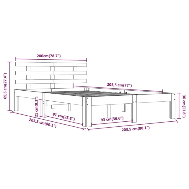 Ustvarite moderno spalnico s tem lesenim posteljnim okvirjem! To je praktičen in dekorativen dodatek za vaše notranje prostore. Vrhunska trdna borovina: Trdna borovina je čudovit naravni material. Borovina ima ravne vzorce, grče pa dajejo materialu njegov značilen, rustikalen videz.Močan posteljni okvir: Lesen okvir zagotavlja trdnost in stabilnost. Letvice iz vezanega lesa omogočajo dobro porazdelitev teže in zagotavljajo, da vzmetnica ostane na mestu ob vsakem zasuku in obračanju med spanjem.Udobno vzglavje: Klasično vzglavje omogoča udoben počitek med branjem ali gledanjem filma. Opomba:Paket vsebuje samo posteljni okvir. Vzmetnica ni priložena. V naši trgovini si lahko ogledate ustrezne vzmetnice.Ta posteljni okvir je primeren za vzmetnico velikosti 200 x 200 cm.Barva: ČrnaMaterial posteljnega okvirja: Trdna borovinaMaterial letvic: Vezan lesCelotne dimenzije: 205,5 x 203,5 x 69,5 cm (D x Š x V)Velikost primerne vzmetnice: 200 x 200 cm (Š x D) (vzmetnica ni priložena)Potrebno sestavljanje: DaPaket vsebuje:1 x Posteljni okvir1 x Vzglavje