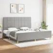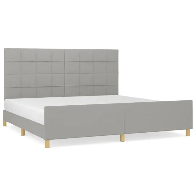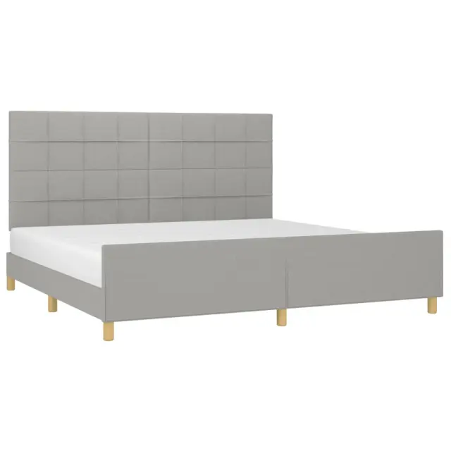 Zagotovite si boljši spanec s tem posteljnim okvirjem z vzglavjem! Je prijeten dodatek za vsako spalnico. Trpežno blago: Blago zagotavlja preprost in čist videz, poleg tega pa je zračno in trpežno.Nastavljiva višina: Vzglavje postelje je nastavljivo po višini po vaših željah.Podporne noge: Postelja je podprta s čvrstimi nogami, ki zagotavljajo njeno stabilnost, varnost in trdnost.Letvice iz vezanega lesa: Letvice iz vezanega lesa omogočajo dobro porazdelitev teže in zagotavljajo, da vzmetnica ostane na mestu ob vsakem zasuku in obračanju med spanjem.Udobna opora: To vzglavje za posteljo vam zagotavlja odlično oporo za hrbet, ko sedite na postelji in berete ali gledate filme. Opomba:Paket vsebuje samo posteljni okvir. Vzmetnica ni priložena. V naši trgovini si lahko ogledate ustrezne vzmetnice.Vsakemu izdelku je priložen priročnik za enostavno sestavljanje.Barva: Svetlo sivaMaterial: Blago (100 % poliester), trden macesnov les, vezan les, inženirski lesMaterial polnila: PenaCelotne dimenzije: 203 x 206 x 118/128 cm (D x Š x V)Velikost primerne vzmetnice: 200 x 200 cm (Š x D) (vzmetnica ni priložena)Paket vsebuje:1 x Posteljni okvir z vznožjem1 x Vzglavje
