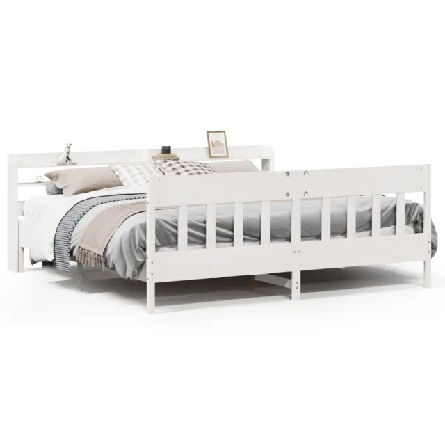 Zagotovite si boljši spanec s tem posteljnim okvirjem! Je prijeten dodatek za vsako spalnico. Stabilen in dolgotrajen okvir: Trdna borovina je znana po svoji trdnosti in trajnosti. Ravni vzorci in značilni vozli prispevajo k njenemu rustikalnemu čaru.Podnožje z letvami za optimalno podporo: Za podporo in zračnost ležišča je posteljni okvir opremljen z letvenim dnom.Vsestransko vzglavje: Ta posteljni okvir je opremljen z vzglavjem, ki zagotavlja odlično oporo hrbtu, ko sedite v postelji in berete ali gledate televizijo, hkrati pa služi tudi kot dekorativni element.Veliko prostora za shranjevanje: To elegantno vzglavje ima tri priročne police, ki ponujajo veliko prostora za shranjevanje, da bodo vaše večerne potrebščine na dosegu roke. Dobro je vedeti:Vzmetnica ni priložena tej postelji. Ponujamo različno izbiro ležišč. V naši trgovini si lahko ogledate ustrezne vzmetnice.Barva: BelaMaterial posteljnega okvirja: Trdna borovinaMaterial letvic: Vezan lesCelotne dimenzije: 218 x 210 x 82 cm (D x Š x V)Velikost primerne vzmetnice: 200 x 200 cm (Š x D) (vzmetnica ni priložena)S policami za shranjevanjePotrebno sestavljanje: DaPaket vsebuje:1 x Posteljni okvir1 x Vzglavje
