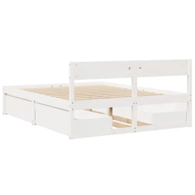 Dodajte svoji spalnici moderen pridih s tem posteljnim okvirjem s predali! Predstavlja praktičen in dekorativen dodatek za vaš bivalni prostor. Stabilen in dolgotrajen okvir: Trdna borovina je znana po svoji trdnosti in trajnosti. Ravni vzorci in značilni vozli prispevajo k njenemu rustikalnemu čaru.Letvice iz vezanega lesa: Letvice iz vezanega lesa omogočajo dobro porazdelitev teže in zagotavljajo, da vzmetnica ostane na mestu ob vsakem zasuku in obračanju med spanjem.Funkcija shranjevanja: Priloženi posteljni predali nudijo dovolj prostora za shranjevanje potrebščin, da bo soba čista in urejena.Vsestransko vzglavje: Ta posteljni okvir je opremljen z vzglavjem, ki zagotavlja odlično oporo hrbtu, ko sedite v postelji in berete ali gledate televizijo, hkrati pa služi tudi kot dekorativni element. Dobro je vedeti:Vzmetnica ni priložena tej postelji. Ponujamo različno izbiro ležišč. V naši trgovini si lahko ogledate ustrezne vzmetnice.Barva: BelaMaterial: Trdna borovinaMaterial letvic: Vezan lesCelotne dimenzije: 205,5 x 165,5 x 31 cm (D x Š x V)Velikost primerne vzmetnice: 160 x 200 cm (Š x D) (vzmetnica ni priložena)Dimenzije posteljnega predala: 95,5 x 47 x 25,5 cm (D x Š x V)Potrebno sestavljanje: DaPaket vsebuje:1 x Posteljni okvir4 x Posteljni predal
