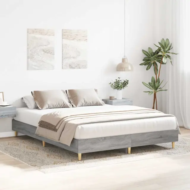 Zagotovite si boljši spanec s tem posteljnim okvirjem! Je prijeten dodatek za vsako spalnico. Vzdržljiv material: Inženirski les se ponaša z izjemno kakovostjo, gladko površino ter močjo, stabilnostjo in odpornostjo na vlago.Podnožje z letvami za optimalno podporo: Za podporo in zračnost ležišča je posteljni okvir opremljen z letvenim dnom.Stabilne in vzdržljive noge: Ta postelja ima trdne noge, ki zagotavljajo stabilnost, varnost in trdnost.Dobro je vedeti:Vzmetnica ni priložena tej postelji. Ponujamo različno izbiro ležišč. V naši trgovini si lahko ogledate ustrezne vzmetnice.Barva: Siva sonomaMaterial posteljnega okvirja: Inženirski les, trden les evkaliptusaMaterial letvic: Vezan lesCelotne dimenzije: 203 x 143 x 25 cm (D x Š x V)Velikost primerne vzmetnice: 140 x 200 cm (Š x D) (vzmetnica ni priložena)Potrebno sestavljanje: Da