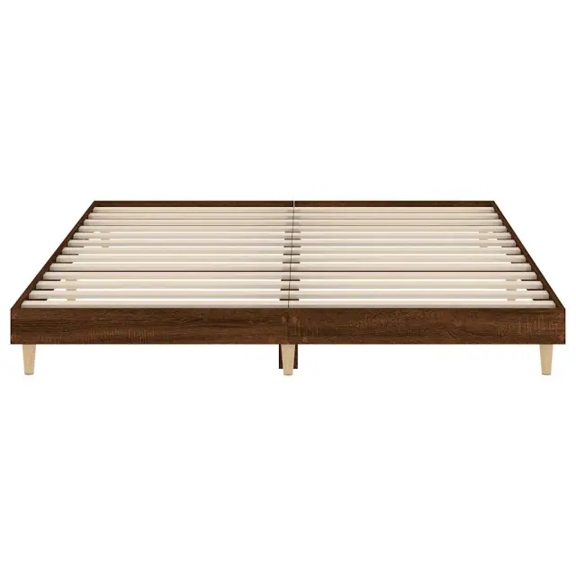 Zagotovite si boljši spanec s tem posteljnim okvirjem! Je prijeten dodatek za vsako spalnico. Vzdržljiv material: Inženirski les se ponaša z izjemno kakovostjo, gladko površino ter močjo, stabilnostjo in odpornostjo na vlago. Lesene noge: Postelja je podprta s čvrstimi lesenimi nogami, ki zagotavljajo njeno stabilnost, varnost in trdnost. Letvice iz vezanega lesa: Letvice iz vezanega lesa omogočajo dobro porazdelitev teže in zagotavljajo, da vzmetnica ostane na mestu ob vsakem zasuku in obračanju med spanjem. Dobro je vedeti: Vzmetnica ni priložena tej postelji. Ponujamo različno izbiro ležišč. V naši trgovini si lahko ogledate ustrezne vzmetnice.Barva: Rjav hrastMaterial posteljnega okvirja: Inženirski les, trden les evkaliptusaMaterial letvic: Vezan lesCelotne dimenzije: 203 x 123 x 20 cm (D x Š x V)Velikost primerne vzmetnice: 120 x 200 cm (Š x D) (vzmetnica ni priložena)Potrebno sestavljanje: Da