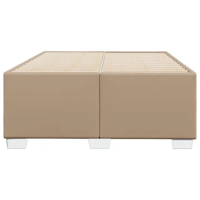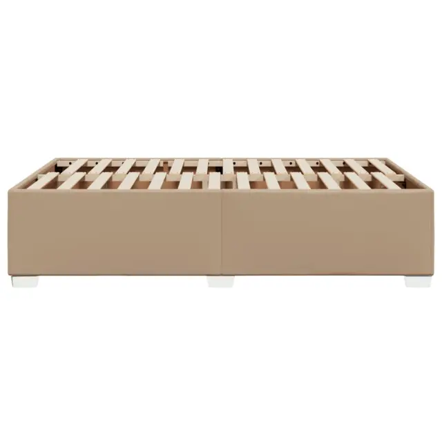 Zagotovite si boljši spanec s tem posteljnim okvirjem! Je prijeten dodatek za vsako spalnico. Dolgotrajno in enostavno vzdrževanje: Umetno usnje je zelo trpežen material, ki je odporen na madeže, zato ga zlahka očistite z vlažno krpo. Njegova gladka površina mu daje eleganten videz, ki spominja na pravo usnje.Letvice za optimalno podporo: Ta posteljni okvir je opremljen z letvicami, ki zagotavljajo osnovno podporo in zračnost vašega ležišča.Stabilne in vzdržljive noge: Ta postelja je podprta z robustnimi nogami, ki zagotavljajo stabilnost, varnost in trdnost. Dobro je vedeti:Vzmetnica ni priložena tej postelji. Ponujamo različno izbiro ležišč. V naši trgovini si lahko ogledate ustrezne vzmetnice.Barva: KapučinoMaterial: Umetno usnje (75 % polivinilklorid, 5 % bombaž, 20 % poliester), vezan les, inženirski les, trden borov lesDimenzije: 190 x 120 x 46 cm (D x Š x V)Primerno za velikost vzmetnice: 120 x 190 cm (Š x D) (vzmetnica ni priložena)Utrjene plastične nogicePodporne noge iz trdnega borovega lesaPotrebno sestavljanje: Da