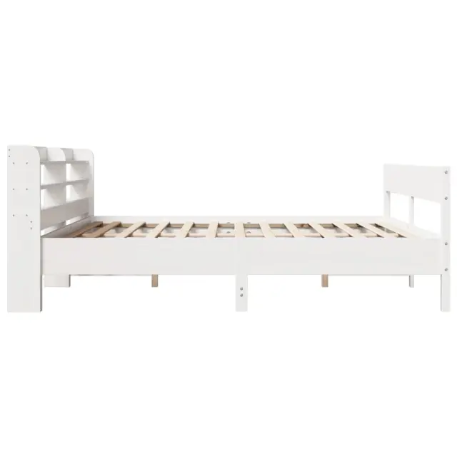 Zagotovite si boljši spanec s tem posteljnim okvirjem! Je prijeten dodatek za vsako spalnico. Stabilen in dolgotrajen okvir: Trdna borovina je znana po svoji trdnosti in trajnosti. Ravni vzorci in značilni vozli prispevajo k njenemu rustikalnemu čaru.Podnožje z letvami za optimalno podporo: Za podporo in zračnost ležišča je posteljni okvir opremljen z letvenim dnom.Vsestransko vzglavje: Ta posteljni okvir je opremljen z vzglavjem, ki zagotavlja odlično oporo hrbtu, ko sedite v postelji in berete ali gledate televizijo, hkrati pa služi tudi kot dekorativni element.Veliko prostora za shranjevanje: To elegantno vzglavje ima tri priročne police, ki ponujajo veliko prostora za shranjevanje, da bodo vaše večerne potrebščine na dosegu roke. Dobro je vedeti:Vzmetnica ni priložena tej postelji. Ponujamo različno izbiro ležišč. V naši trgovini si lahko ogledate ustrezne vzmetnice.Barva: BelaMaterial posteljnega okvirja: Trdna borovinaMaterial letvic: Vezan lesCelotne dimenzije: 218 x 190 x 82 cm (D x Š x V)Velikost primerne vzmetnice: 180 x 200 cm (Š x D) (vzmetnica ni priložena)S policami za shranjevanjePotrebno sestavljanje: DaPaket vsebuje:1 x Posteljni okvir1 x Vzglavje