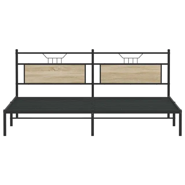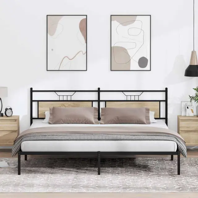 Zagotovite si boljši spanec s tem posteljnim okvirjem! Je prijeten dodatek za vsako spalnico. Stabilen in dolgotrajen okvir: Jeklo je močno, stabilno in trpežno, zato je idealna izbira za številne aplikacije, od proizvodnje pohištva do gradbeništva.Vsestransko vzglavje: Ta postelja je opremljena z vzglavjem, ki zagotavlja odlično oporo hrbtu, ko sedite v postelji in berete ali gledate televizijo, hkrati pa služi tudi kot dekorativni element.Dodaten prostor za shranjevanje: Za udobje ima posteljni podstavek pod seboj dodaten prostor, v katerem lahko shranite škatle za shranjevanje, ki niso vidne.Podnožje z letvami za optimalno podporo: Kovinski posteljni okvir je opremljen z letvenim dnom, ki zagotavlja oporo in zračnost ležišča. Dobro je vedeti:Vzmetnica ni priložena tej postelji. Ponujamo različno izbiro ležišč. V naši trgovini si lahko ogledate ustrezne vzmetnice.Barva: Sonoma hrastMaterial: Inženirski les in jekloCelotne dimenzije: 207 x 199 x 91,5 cm (D x Š x V)Višina prostora pod posteljo: 27 cmPrimerna velikost vzmetnice: 193 x 203 cm (Š x D) (vzmetnica ni priložena)Z vzglavjemPotrebno sestavljanje: Da