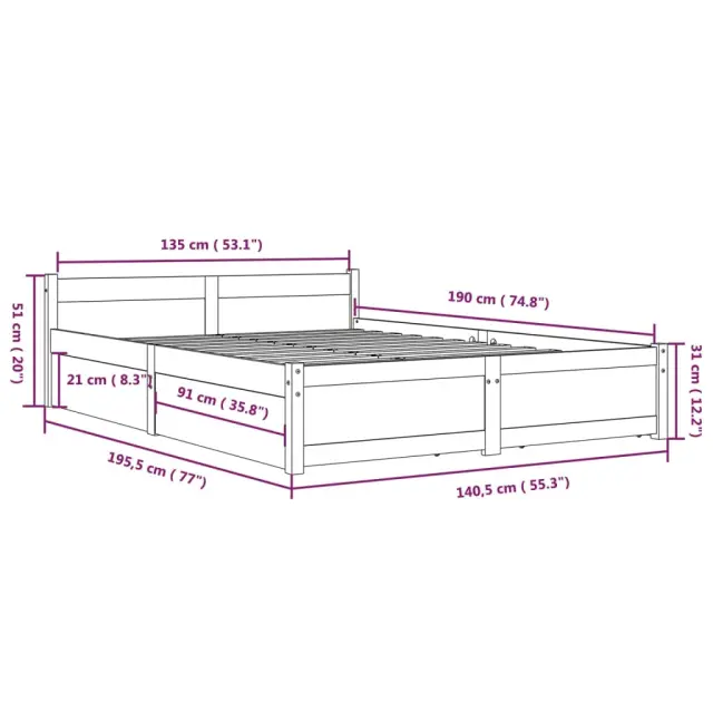 Posteljni okvir - Dvoposteljna postelja - Zakonska postelja s predali bel 135x190 cm-J14928