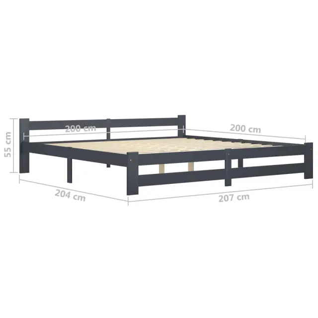 Posteljni okvir - Dvoposteljna postelja - Zakonska postelja temno siv iz trdne borovine 200x200 cm-J5630