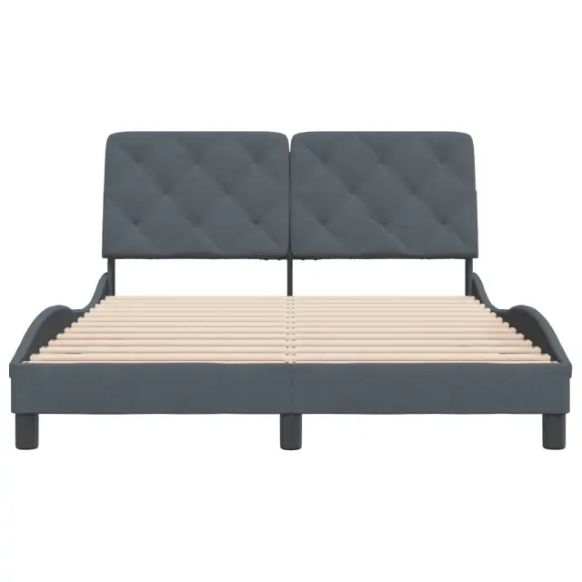 Zagotovite si boljši spanec s tem posteljnim okvirjem z vzglavjem! Je prijeten dodatek za vsako spalnico. Mehak žamet: Žamet je mehka in udobna tkanina, ki je prijetna do kože.Letvice iz vezanega lesa: Letvice iz vezanega lesa omogočajo dobro porazdelitev teže in zagotavljajo, da vzmetnica ostane na mestu ob vsakem zasuku in obračanju med spanjem.Odlična podpora: Vzglavna stranica je napolnjena s peno za izjemno mehkobo in optimalno udobje ter zagotavlja odlično podporo hrbtu, ko sedite v postelji in berete ali gledate televizijo.Priročna zasnova: Vzglavna stranica ima zadrgo za preprosto namestitev, pripenjala na zadnji strani pa se lahko uporabijo za pritrditev LED lučk.Valovita stranica: Valoviti videz posteljnega okvirja je eleganten in prefinjen. Dekorju v vašem domu dodaja sodoben in eleganten pridih ter tako postane osrednja točka spalnice. Dobro je vedeti:Vzmetnica ni priložena tej postelji. Ponujamo različno izbiro ležišč. V naši trgovini si lahko ogledate ustrezne vzmetnice.Posteljni okvir z vzglavjem:Barva: Temno sivaMaterial: Žamet (100 % poliester), kovina, trdna borovina, vezan les, inženirski lesCelotne dimenzije: 218 x 125 x 74,5 cm (D x Š x V)Velikost primerne vzmetnice: 120 x 200 cm (Š x D) (vzmetnica ni priložena)Oblazinjeno vzglavje:Barva: Temno sivaMaterial: Žamet (100 % poliester)Material polnila: PenaDimenzije: 122 x 6 x 48 cm (D x Š x V)Primerna širina vzmetnice: 120 cmPotrebno sestavljanje: DaPaket vsebuje:1 x Posteljni okvir z vzglavjem1 x Oblazinjeno vzglavje