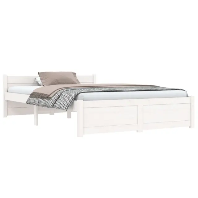 Posteljni okvir - Dvoposteljna postelja - Zakonska postelja bel iz trdnega lesa 135x190 cm-J10129