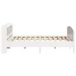 Zagotovite si boljši spanec s tem posteljnim okvirjem! Je prijeten dodatek za vsako spalnico. Stabilen in dolgotrajen okvir: Trdna borovina je znana po svoji trdnosti in trajnosti. Ravni vzorci in značilni vozli prispevajo k njenemu rustikalnemu čaru.Podnožje z letvami za optimalno podporo: Za podporo in zračnost ležišča je posteljni okvir opremljen z letvenim dnom.Vsestransko vzglavje: Ta posteljni okvir je opremljen z vzglavjem, ki zagotavlja odlično oporo hrbtu, ko sedite v postelji in berete ali gledate televizijo, hkrati pa služi tudi kot dekorativni element.Veliko prostora za shranjevanje: To elegantno vzglavje ima tri priročne police, ki ponujajo veliko prostora za shranjevanje, da bodo vaše večerne potrebščine na dosegu roke. Dobro je vedeti:Vzmetnica ni priložena tej postelji. Ponujamo različno izbiro ležišč. V naši trgovini si lahko ogledate ustrezne vzmetnice.Barva: BelaMaterial posteljnega okvirja: Trdna borovinaMaterial letvic: Vezan lesCelotne dimenzije: 218 x 190 x 82 cm (D x Š x V)Velikost primerne vzmetnice: 180 x 200 cm (Š x D) (vzmetnica ni priložena)S policami za shranjevanjePotrebno sestavljanje: DaPaket vsebuje:1 x Posteljni okvir1 x Vzglavje